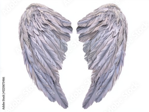 Ethereal Brushstroke Wings of Soft Gray Feathers - Cinematic Full Shot on Isolated White Background