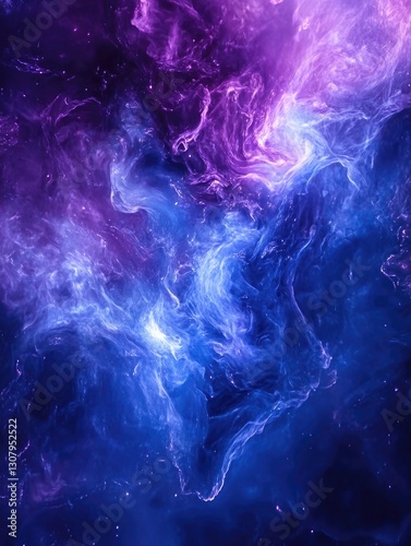 Ethereal Cosmos, An Abstract Nebula of Swirling Purple and Blue Radiance