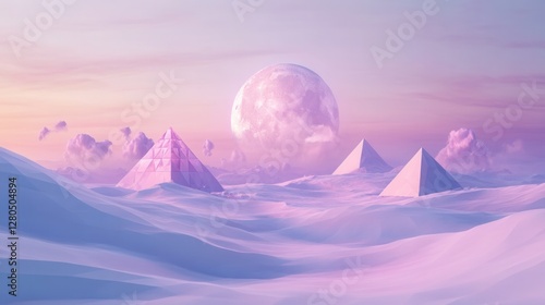 Ethereal Pyramids Against Dreamy Pastel Sky with Full Moon