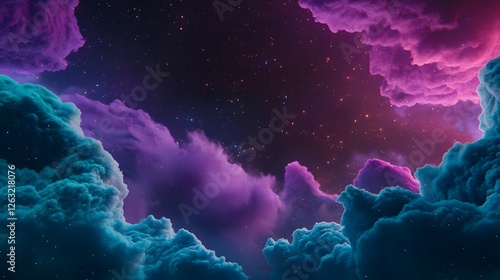 Ethereal Sky with Colorful Clouds and Starry Night Background