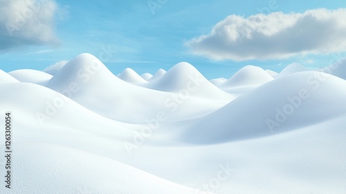 Ethereal snow-covered landscape with undulating fluffy mounds, smooth and untouched surface, pure white glow, high-resolution winter fantasy setting