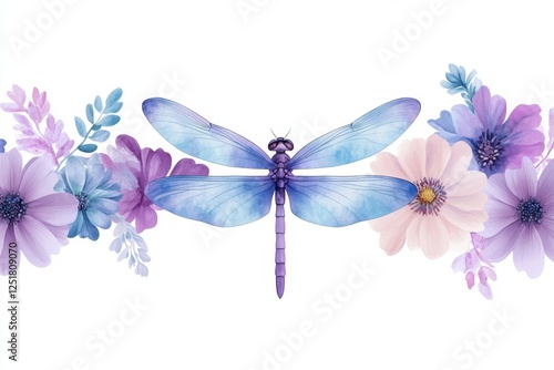dragonfly, watercolor, flower, aethereal, purple, blue, floral, nature, insect, botanical, delicate, artistic, illustration, spring, garden, vibrant, wing, beauty, design, decoration, soft, pastel, colourful, blooming, natural, serene, peaceful, fantasy, art, creative, elegant, butterfly, flora, fauna, whimsical, tranquil, aesthetic, summer, blossom, ornamental, high-coloured, charming, graceful, light, airy, modern, unique