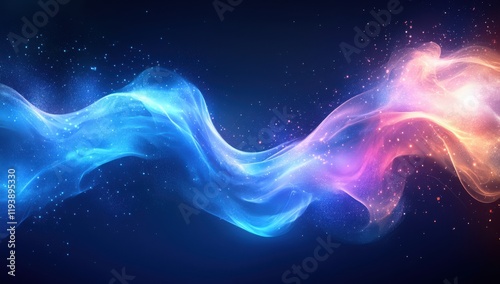 Ethereal Waves of Colorful Abstract Light Flowing Through a Cosmic Space with Starry Background of Blue, Pink, and Purple Hues for Creative Art Projects