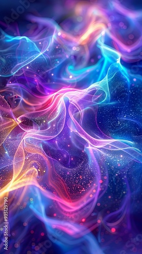 Ethereal waves of neon light cascading in a dreamscape
