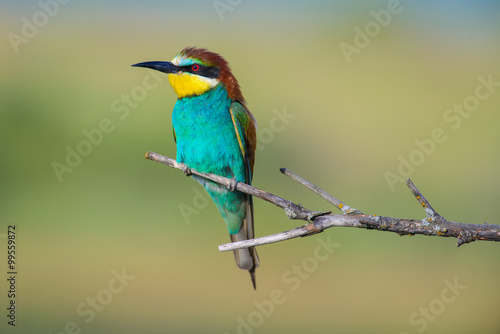 animal, bee-eater, bird, coloured, nature, yellow, bee, eater, colours, beauty, tree branch, wildlife, green, bird, european, feather, young, colours, outdoors, wild, motley