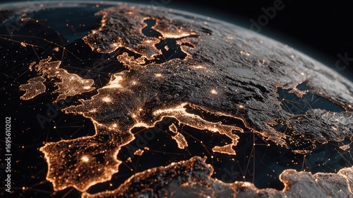 europa, continent, night, city, light, network, connection, global, earth, earth, map, illuminated, infrastructure, technology, communication, travel, globalisation, urban, modern, detailed, satellite, view, high, resolution, digital, image, graphic, design, dark, space, line, border, illumination, transport, datum, node, point, glowing, connectivity, urbanisation, dense, populated