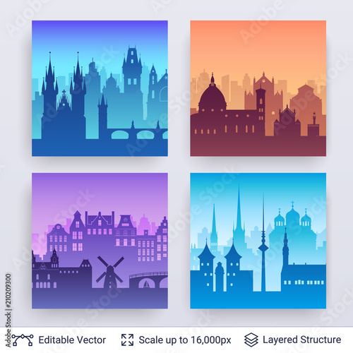 European famous city scapes set.