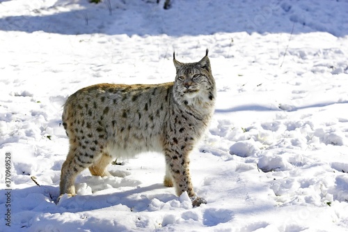 adult, animal, big cat, europa, felino, full-length, lynx, mammal, one animal, outdoors, photo, profile, snow, spotted, standing up, wildlife, winter
