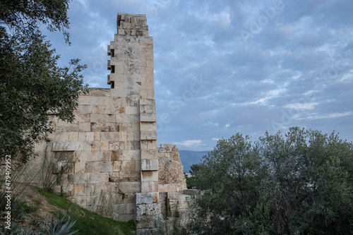 Evening sky with clouds against the background of the ruins of ancient greek architecture