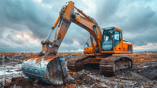 excavator in mud on construction site
