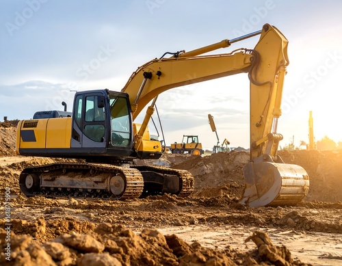 shoveling, construction, site, sunset, machinery, yellow, heavy, equipment, shoveling, sand, dirt, ground, landscape, work, building, progress, industry, vehicle, powerful, daylight, machine, excavation, sunny, dune, dust, operation, industrial