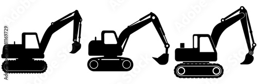 Excavator Silhouette Vector Art on White Background