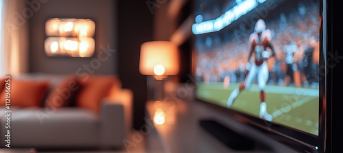 football, flatscreen, living room, excitement, modern, television, fan, sport, play, atmosphere, celebration, gathering, entertainment, viewing, interior, decor, family, friends, match, vibrant, energetic, action, relaxed, leisure, home, technology, sharpened, blur, crowd, dynamic, athlete, passion, broadcast, event, comfort, style, enjoyment, enthusiasm, support, social, contemporary, video, screen