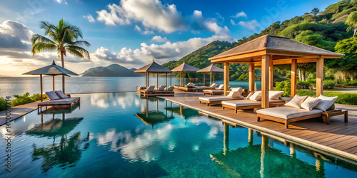 Exclusive beachfront pool with floating cabanas in Thailand