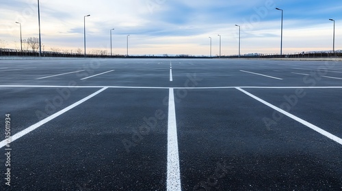Expansive Modern Parking Lot with Clearly Defined Markings Under a Blue Sky at Dawn : Generative AI