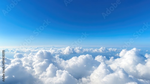 sky, cloud, blue, white, huge, high, aerial, view, sunny, bright, fluffy, cumulus, atmosphere, horizon, clear, depth, immensity, upper, air, panorama, roomy, open, nature, weather, clearness, daylight, sunlight, scene, viewpoint, distance, space, perspective, layer, texture, cloudscape, altitude, whimsical, beauty, landscape, image, photo, colours, light, brightly