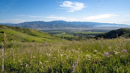 nature, landscape, green, hill, blue skies, tranquil, scenery, peaceful, field, mountain, outdoors, environment, spring, grass, flora, heaven, light, view, skyline, majestic, serene, vista, wildflower, summer, sunny, beauty, panorama, explore, milieu, place, calmness, escape, grassy, scenic, breath, clear, air, leafy, horizon, panoramic, sight, brilliancy, peace, sparkle, brightness, scenic view, exploration, celebration, earth