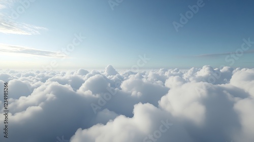 Expansive White Fluffy Clouds Gently Floating Across an Endless Blue Sky : Generative AI