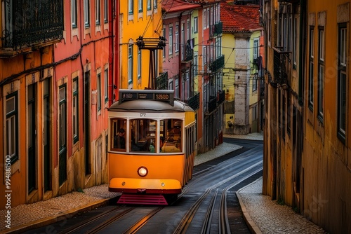 Explore the vibrant charm of Lisbon, Portugal, through this stunning photograph. The image captures the iconic cityscape of Lisbon, with its colorful buildings, historic trams, generative ai