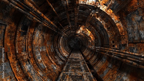 Exploring abandoned industrial tunnels underground 3d render grungy dark atmospheric depths