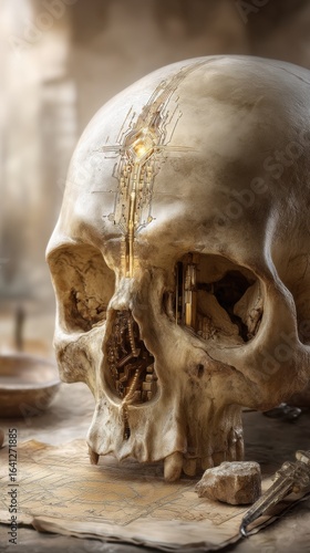skull, technology, mortality, communication, innovation, neuroscience, cybernetic