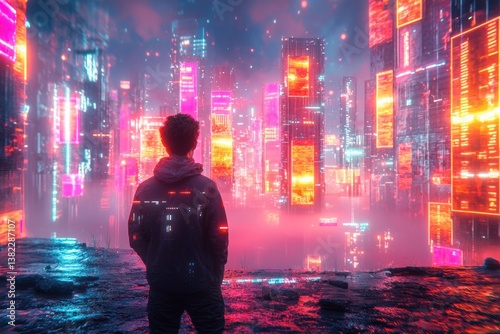 man, city, night, urban life, technology, futuristic, nightlife, adventure, innovation, exploration, community, connectivity, entertainment
