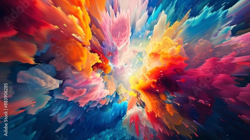 Explosive burst of pixelated colors forming a vibrant and dynamic backdrop.