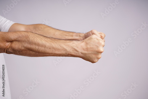 Expressive Male Hands on White Background in Studio Lighting