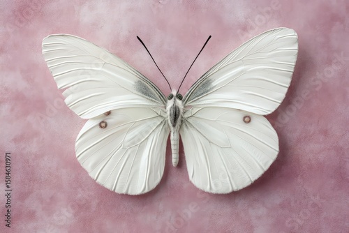 Exquisite white butterfly on a delicate pink background.