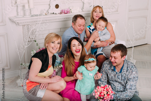 portrait, smiling, man, male, people, family, caucasian, mother, happy, generation, older, group, sofa, grandchild, 60s, horizontal, adult, 30s, relaxed, love, affection, affectionate, retirement, woman, mature, indoor, sitting, 30s, at camera, hug, grandchild, senior, embracing, grandparent, husband, living room, chair, wife, 60s, home, person, father, mother
