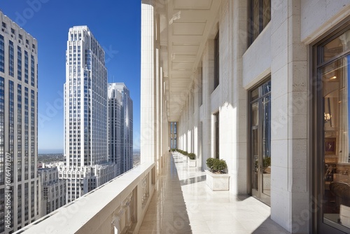 light, highrise, high, balcony, corridor, city, detail, detailed, viewpoint, elegant, structure, exterior, grand, stone, building, bright, masonry, concrete, horizon, facades, sunny, view, building, wide, modern, window, daylight, architecture, city landscape, urban, sun, tall, perspective, sky, patio