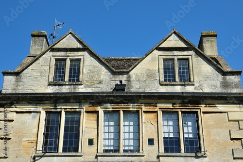 Exterior view of the upper floors of a beautiful old town house on a street in an English city