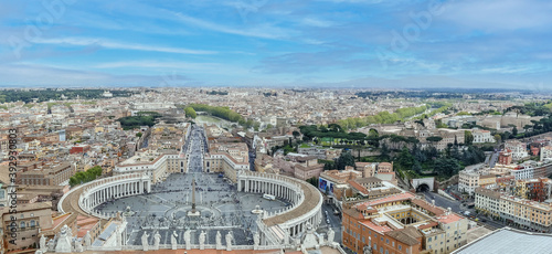Extra panoramic aerial vew of San Pietro Square and Rome
