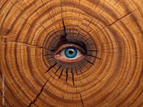 eye, wood, tree, stump, concentric, ring, pattern, texture, nature, surreal, mystery, blue, gaze, contrast, high-coloured, cross section, intricate, wonder, wooden, natural, mystic