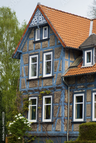 frame house, half-timbering, house, aged, stalk, forest, home interior, german, village, restoration, clay, buy, carpenter, sell, veneer, nature, heirloom, heritage, blue, paint