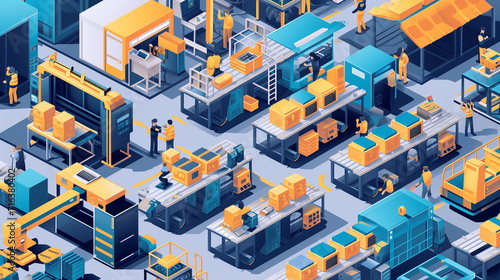 factory, isometric, vector, assembly line, business, construction, industry, computer, office, men at work, design, modern, equipment, production, machine, three-dimensional, illustration