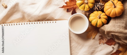 leaf, fall, seasonal, background, autumn, desk, notebook, drink, composition, lifestyle, thanksgiving, blank, design, decoration, concept, natural, holiday, mug, table, paper, cosy, morning, vintage, empty, cup, orange, maple, flat, hot drink, sweater, october, lay, notepad, warm, comfort, brown, education, white, yellow, pumpkin, top, plaid, card, note, creative, book, beverage, frame, work, view
