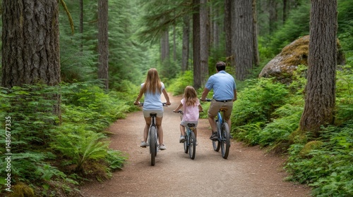 family, cycling, riding, trail, forest, activity, person, daughter, father, mother, bike, path, wood, green, nature, together, leisure, summer, day, travel, vacation, tour tourism, lifestyle, recreation, backview, pedaling, sport, tree, fern, dirt, health, well-being, eltern, children