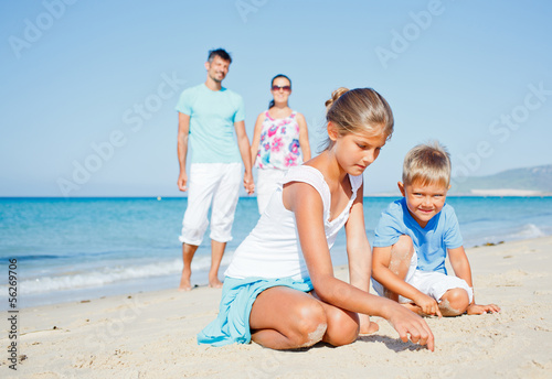 family having fun on beach