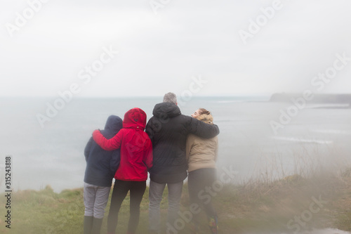 family, warm, clothes, enjoy, ocean, view, activity, adult, arm, away, bonding, boy, caucasian, children, childhood, cliff, copy space, day, 4, freedom, get, girl, group, holiday, hug, leisure, lifestyle, love, man, mature, nature, outdoors, people, preteen, real, backview, recreation, seascape, selective focus, racked, teenage, togetherness, travel, vacation, weekend, winter, woman