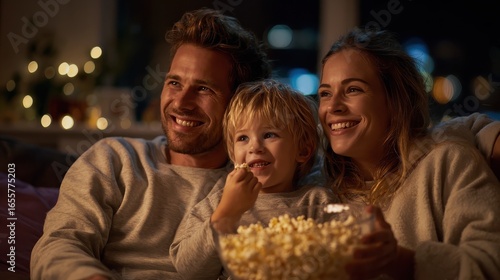 happy, smiling, family, leisure, people, concept, father, mother, son, watching tv, home, night, children, love, joyful, enjoyment, together, cosy, comfortable, living room, entertainment, relaxing, fun, domestic life, indoor, bonding, laughter, happiness, cheerful, snacking, lifestyle, quality time, relaxation, contentment, content, pleasant, affection, food, snack, carefree, marvellously, goodtime, harmony, grateful, delight
