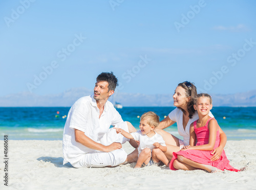 Family of four on tropical beach
