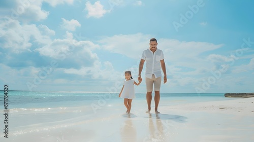 Family vacations father and daughter playing together outdoor child with daddy walking on the beach happy candid emotions parent and kid Father's day holiday