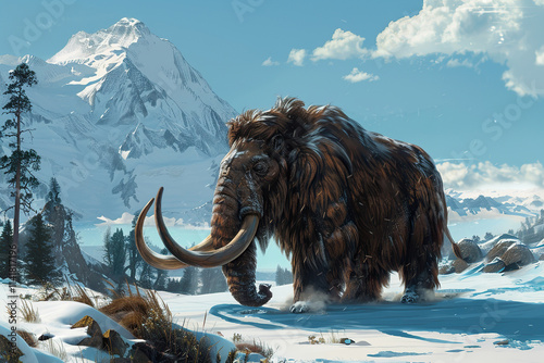 Fantastically majestic mammoth in its natural habitat with large tusks