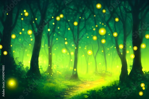 Fantasy forest with fireflies, magic orbs and more.