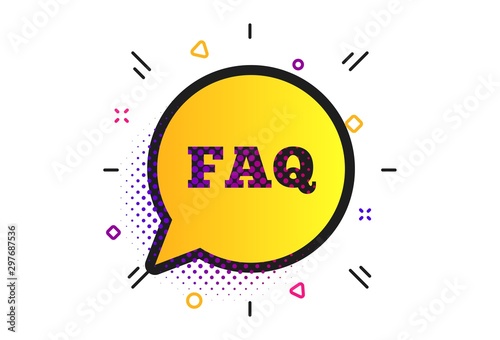 FAQ information sign icon. Halftone dots pattern. Help speech bubble symbol. Classic flat faq icon. Vector