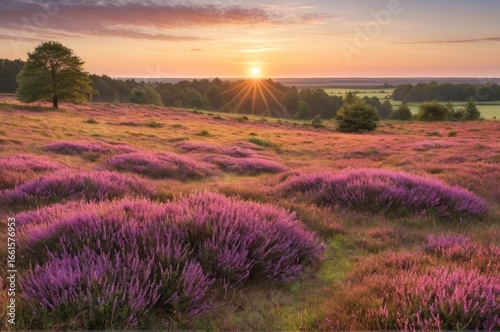 Farbenpracht der Heideblüte – Blühende Heidelandschaft mit Besenheide, natürliche Farbenvielfalt