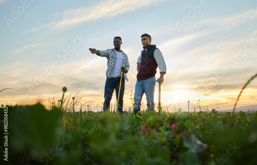 farmer, man, collaboration, farm, pointing, farming, discussion, agriculture, eco, product, partner, production, partnership, sustainability, quality control, man, business, people, natural, working, meeting, work, nature, person, green, talking, industry, men at work, teamwork, grass, field, sunset, sky, job, support, vegetable, sunshine, countryside, employee, conversation, earth, plant, career, growth, development