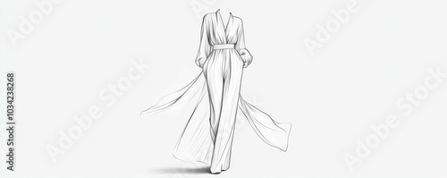 Fashion sketch of a woman in a flowing jumpsuit.