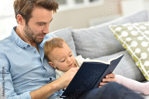 father, man, children, baby, children, girl, daughter, family, father, father, eltern, reading, book, education, quiet, parenthood, sitting, smile, smiling, happy, cute, people, adult, single, enjoying, indoor, couch, sofa